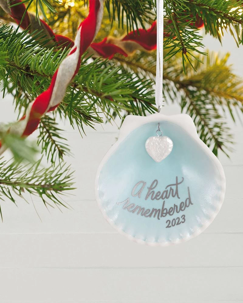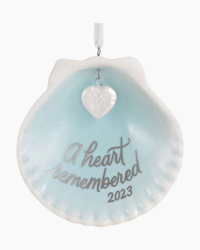 Inspired by a scallop clam shell, this elegant Christmas tree memorial ornament is a beautiful expression of sympathy for anyone who has experienced the loss of a loved one. The delicate porcelain shell year-dated design honors someone who will be dearly missed and always remembered.