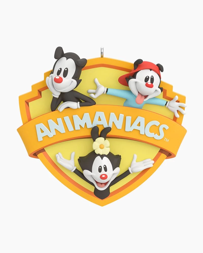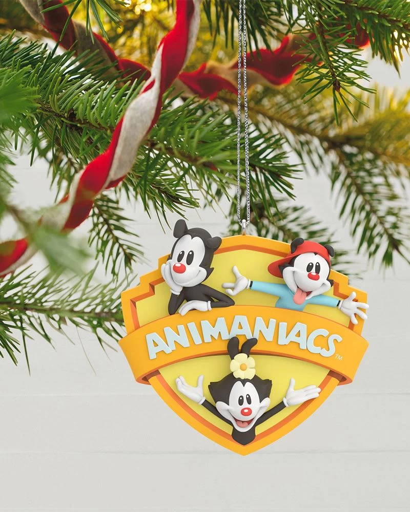 Relive the zany antics of the Animaniacs and celebrate the 30th anniversary of the wacky and witty characters with this Christmas tree ornament that features Yakko, Wakko and Dot. The energetic Warner brothers – and the Warner sister! – burst from their iconic shield icon in this colorful decoration that gives a fun nod to the clever cartoon’s opening scene.