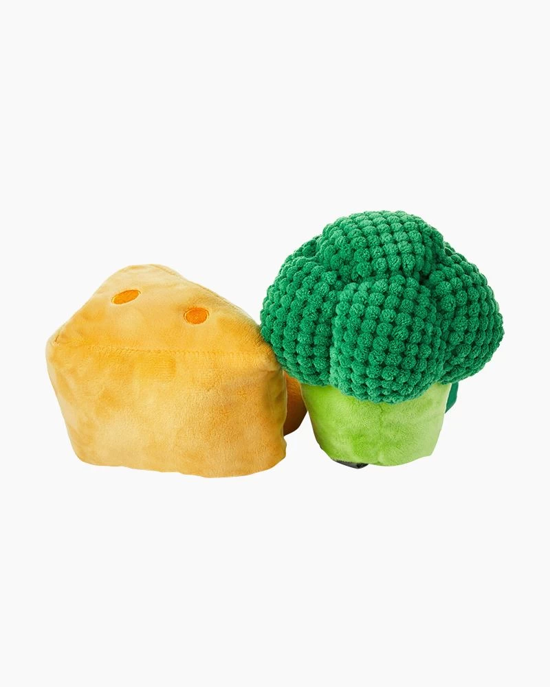 - Set of two broccoli and cheese stuffed toys is made of soft plush fabric and features embedded magnets for connecting to each other