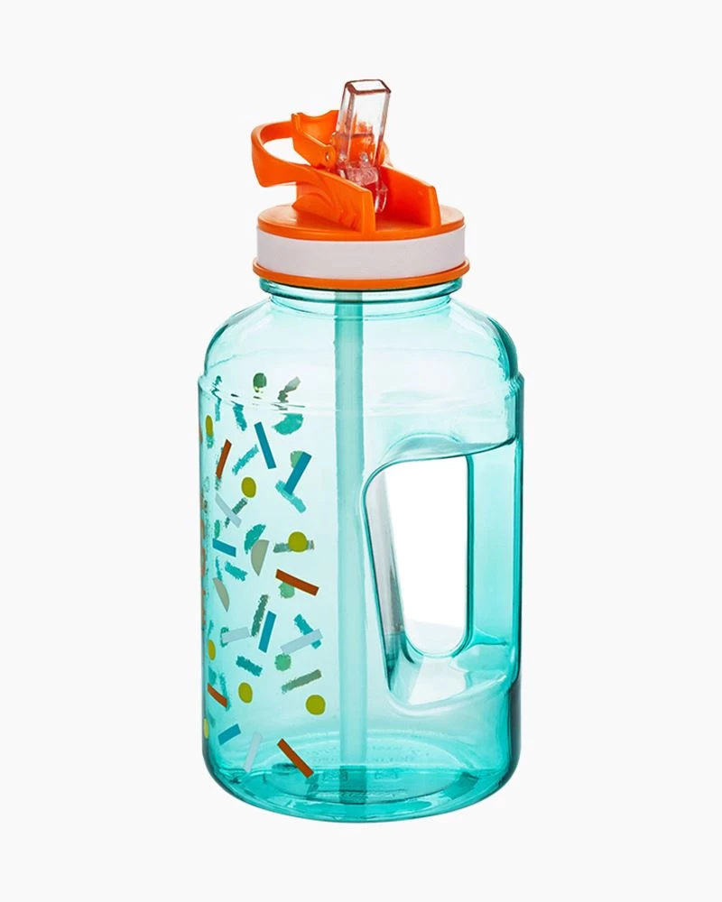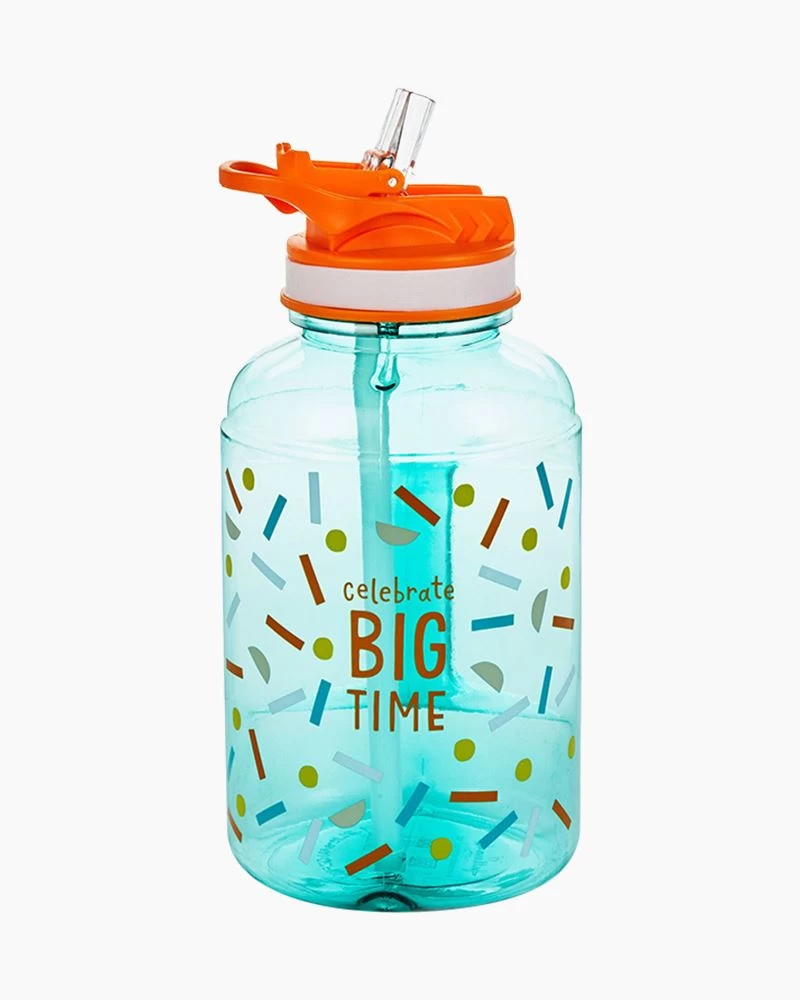 Upsize the festivities with this water jug that holds enough ounces to pair a major celebration with ample hydration. An orange “celebrate big time” message and geometric confetti designs on the blue-green water bottle give it star power as a gift for a birthday, graduation, bachelorette party and more. Convenient molded handle and fun orange lid with straw mean you’ll always want to keep this water jug within easy reach.