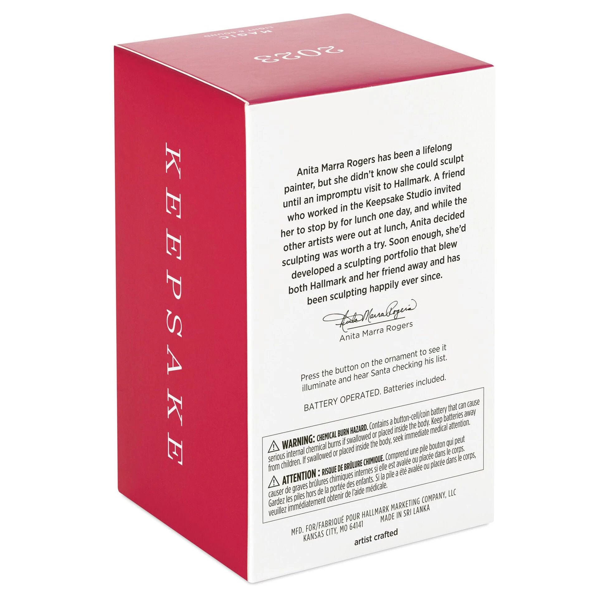 - Key Features: Press the button on the Magic Light and Sound ornament to see it illuminate and hear Santa checking his list.