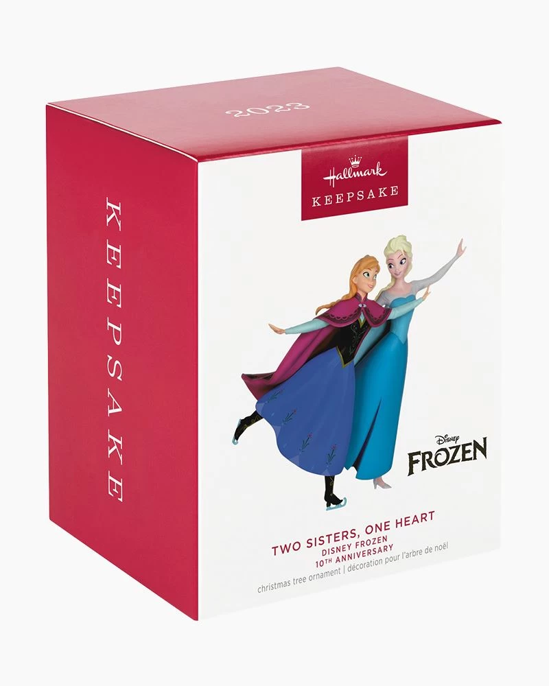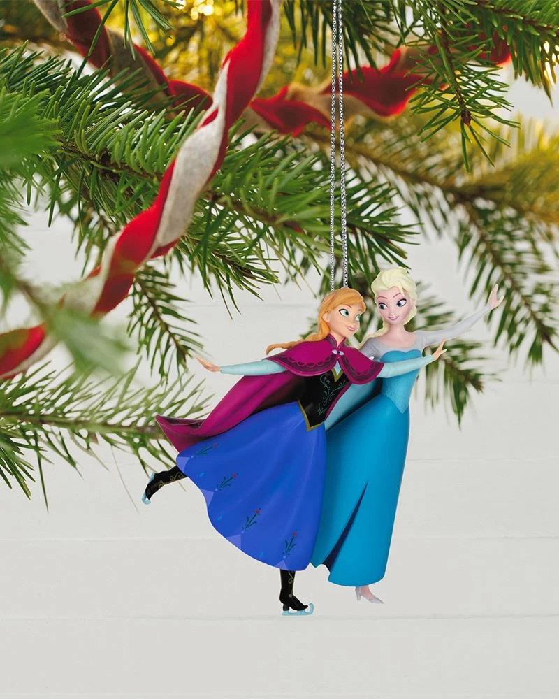 Join in the celebration for the 10th anniversary of Disney’s “Frozen.” The smash-hit film earned fans of all ages with its unforgettable soundtrack and heartwarming tale of sisters Anna and Elsa, whose love for one another ultimately saved the kingdom of Arendelle. This fun Christmas tree ornament features the beloved pair ice skating together.