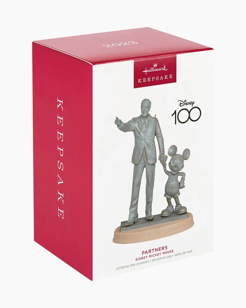 Celebrate Disney’s 100th anniversary and commemorate an appreciation for all things Disney with this Christmas tree ornament featuring a replica of the famous “Partners” statue. The iconic design features Walt Disney and Mickey Mouse standing hand in hand, smiling.