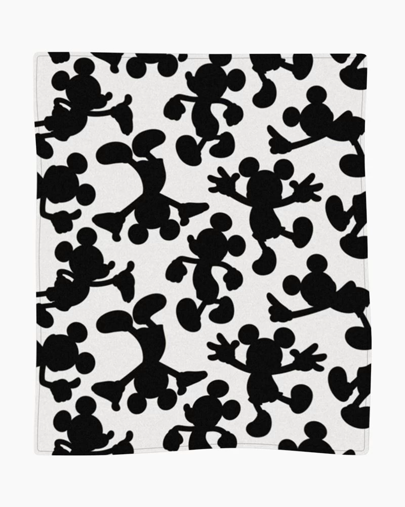 - Disney plush polyester throw blanket features black and white Mickey Mouse silhouettes pattern