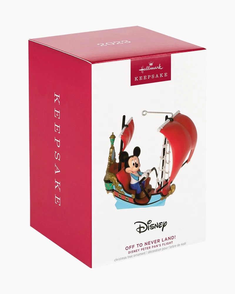 Take your Disney fandom to new heights this holiday season. Mickey is flying high in his enchanted pirate ship bound for Never Land in this Christmas tree ornament that’s inspired by the Peter Pan’s Flight Disney Parks ride. Relive the fun of a visit to the theme parks or give the decoration to a fan of the classic animated Disney movie.