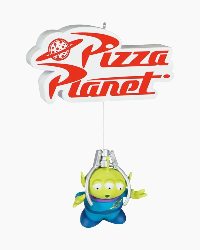 “The claw chooses who will go and who will stay.” At long last, it’s this little green alien who has been chosen! Pull the string to see the iconic three-eyed alien ascend towards the Pizza Planet logo as it plays audio from the beloved “Toy Story” movie (battery-operated).