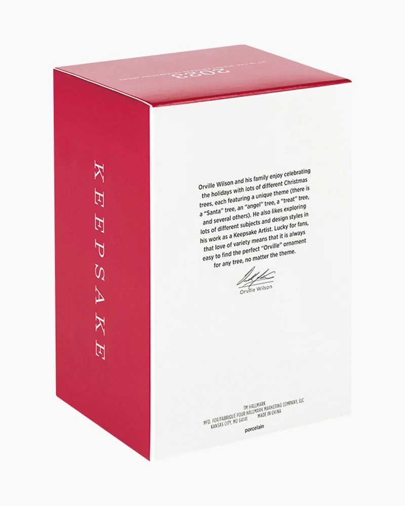 - Additional Details: Artist crafted by Orville Wilson. Porcelain Christmas tree ornament