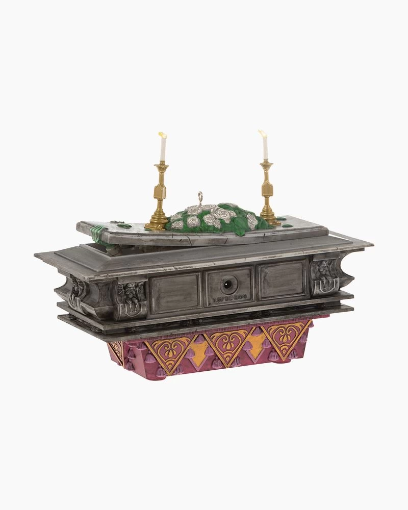 Relive the fun of a visit to the Disney Parks right on your Christmas tree! No tour through The Haunted Mansion is complete without a stop by the Conservatory. This Christmas tree ornament features the iconic skeletal specter in his grandiose coffin, which glows from within. Plug the ornament into Hallmark’s Keepsake Power Cord (sold separately) for constant illumination, then press the button to start a sound and light show scene. Connect all of The Haunted Mansion Collection ornaments – Madame Leota, Victor Geist, and The Coffin in the Conservatory – and The Haunted Mansion Tree Topper (each sold separately) to unlock additional amazingly interactive performances. We think you’ll agree these happy haunts deserve a place in the dead center of your holiday decor.