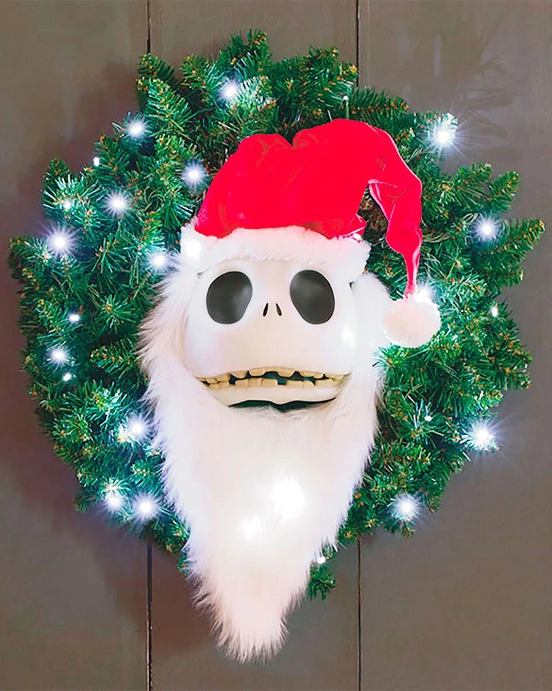 What’s this? The Pumpkin King himself has arrived to make the holidays frightfully fun for fans of “The Nightmare Before Christmas.” Connect this festive wreath to the included power adapter to see the LED lights glow. Then press the button to see Jack Skellington – donning his Sandy Claws hat and beard – move as he says phrases from the beloved film.