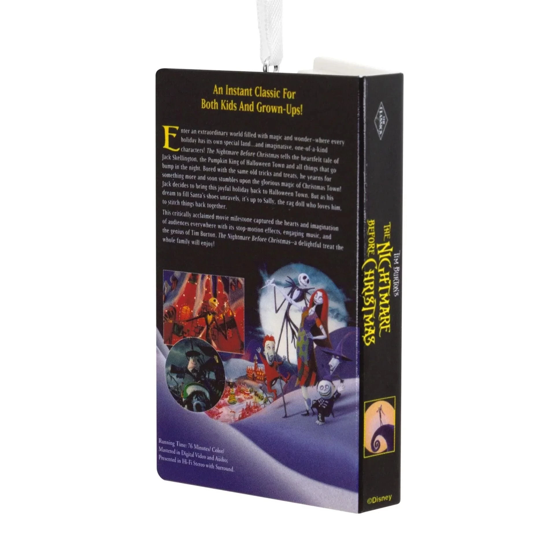 - Relive the adventures of Jack Skellington that you loved to rewind and rewatch in “The Nightmare Before Christmas” when you hang this nostalgic Christmas ornament featuring a video cassette tape case.