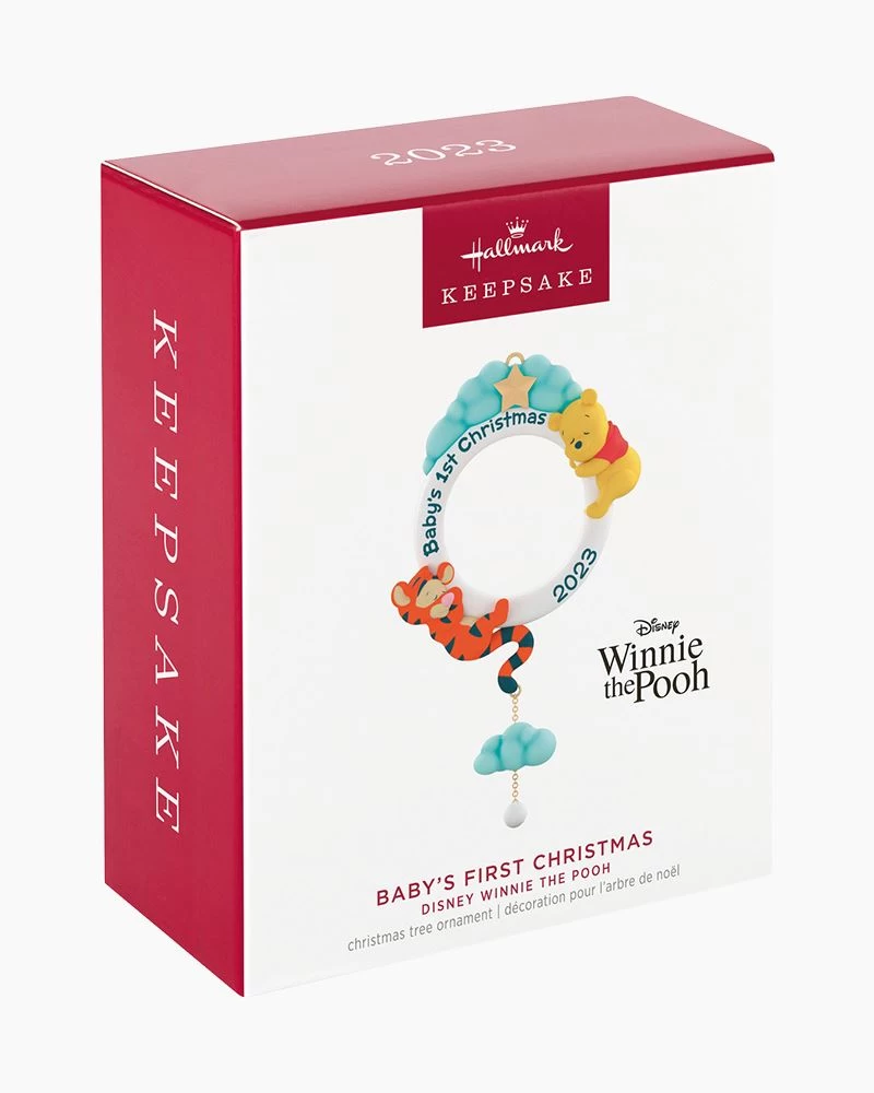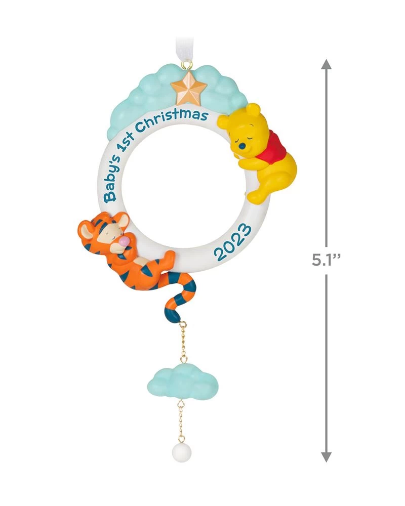 Celebrate a baby’s first Christmas with Winnie the Pooh and Tigger, too. This Christmas tree ornament features the pair of Hundred Acre Wood pals napping on a sweet ring design that features a dangling cloud charm. Perfect for remembering a child’s (or grandchild’s) very first holiday season.