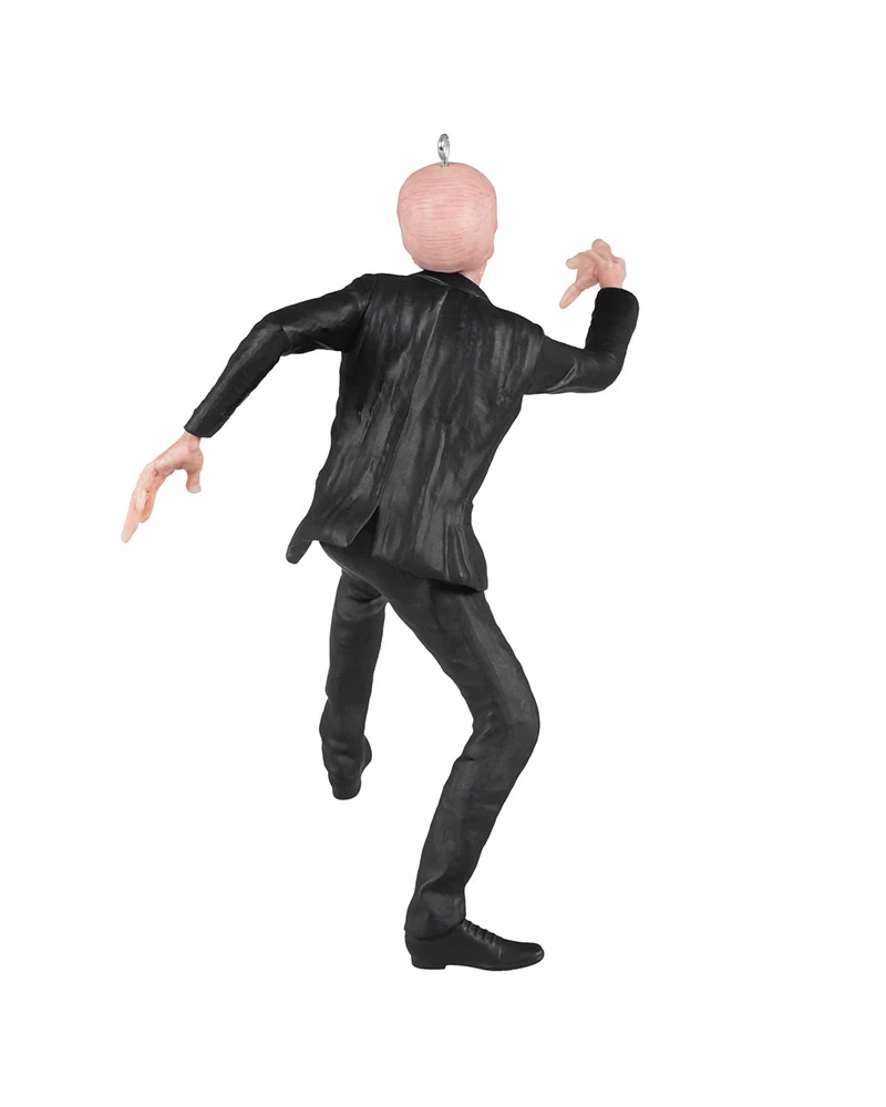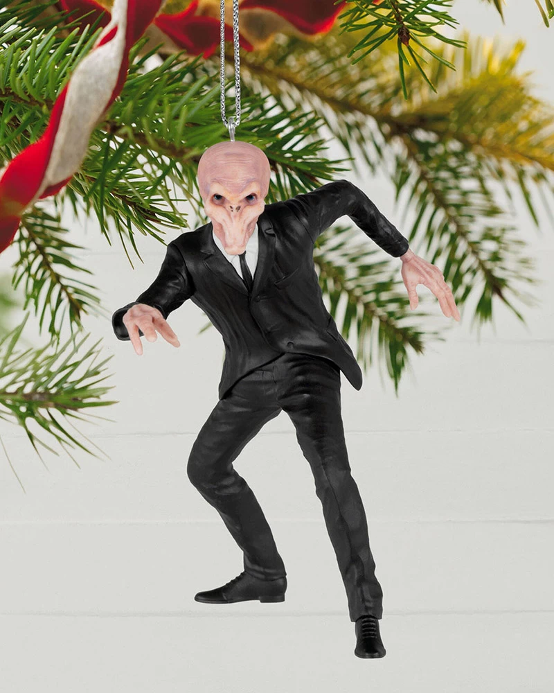 Prophesy a silent night or two with this Christmas tree ornament from the long-running BBC sci-fi series “Doctor Who.” Whether The Silence character hangs on your tree due to a forgotten command or to listen to your Christmas wishes is for you to decide. This renegade priest of the Kovarian Chapter wears a black suit and tie and bears a mouthless visage on his tall, humanoid shape. It’s sure to delight any “Doctor Who” fan in the midst – if they can remember seeing it, that is.