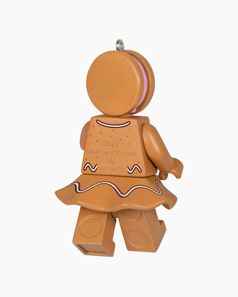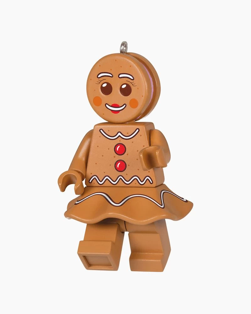 Add a tasty twist to your holiday decorating with this gingerbread gal Christmas tree ornament based on a LEGO Minifigure. With frosting design details and signature LEGO styling, this yummy little lady has a festive look that every young creator or master builder will love.