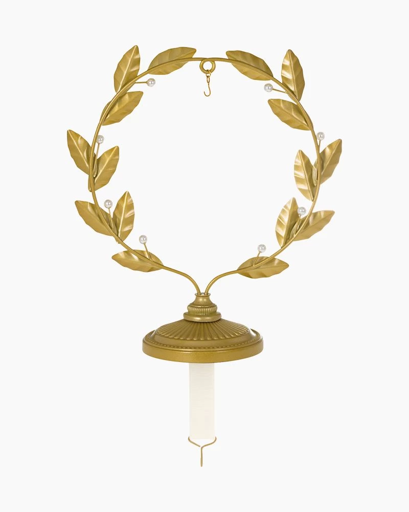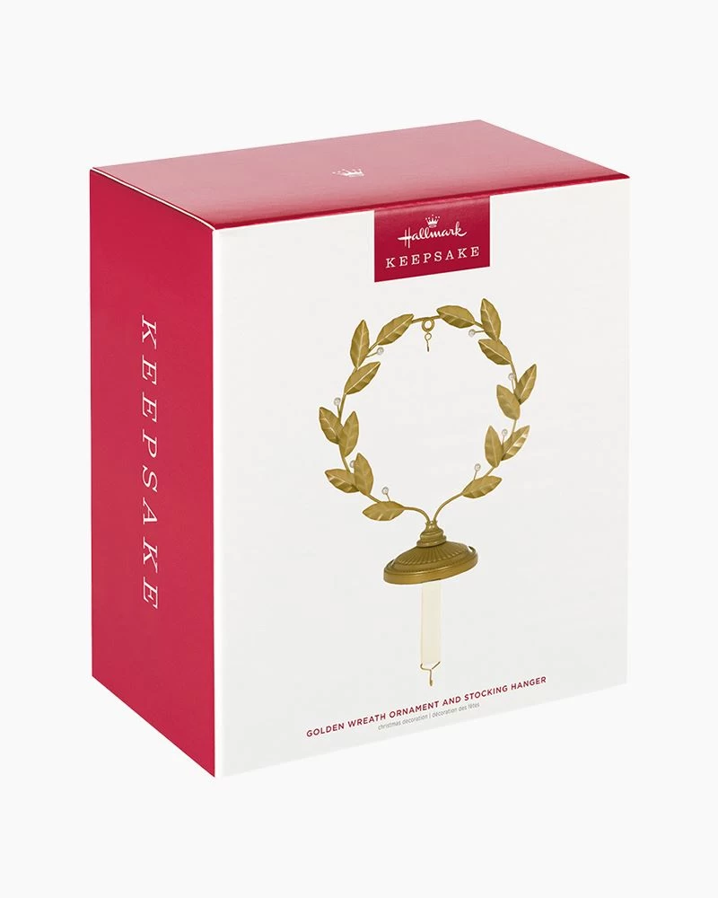 Hang your stockings – and a special ornament – with care! This elegant metal stocking hanger with a matte-gold finish features a wreath of sculpted leaves and pearl accents. An integrated Christmas tree ornament hook lets you show off one of your favorite Keepsake Ornaments while leaving your stocking for Santa to fill.
