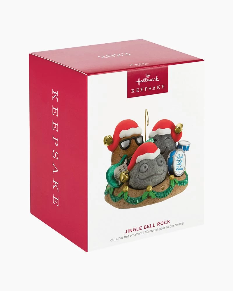 Put some groove in your holidays when you let this “rock” band play as friends and family gather around the tree. Press the button on the punny Christmas tree ornament to hear the Jingle Bell Rockers, a trio of stones wearing Santa hats, jam out a rockin’ holiday tune.
