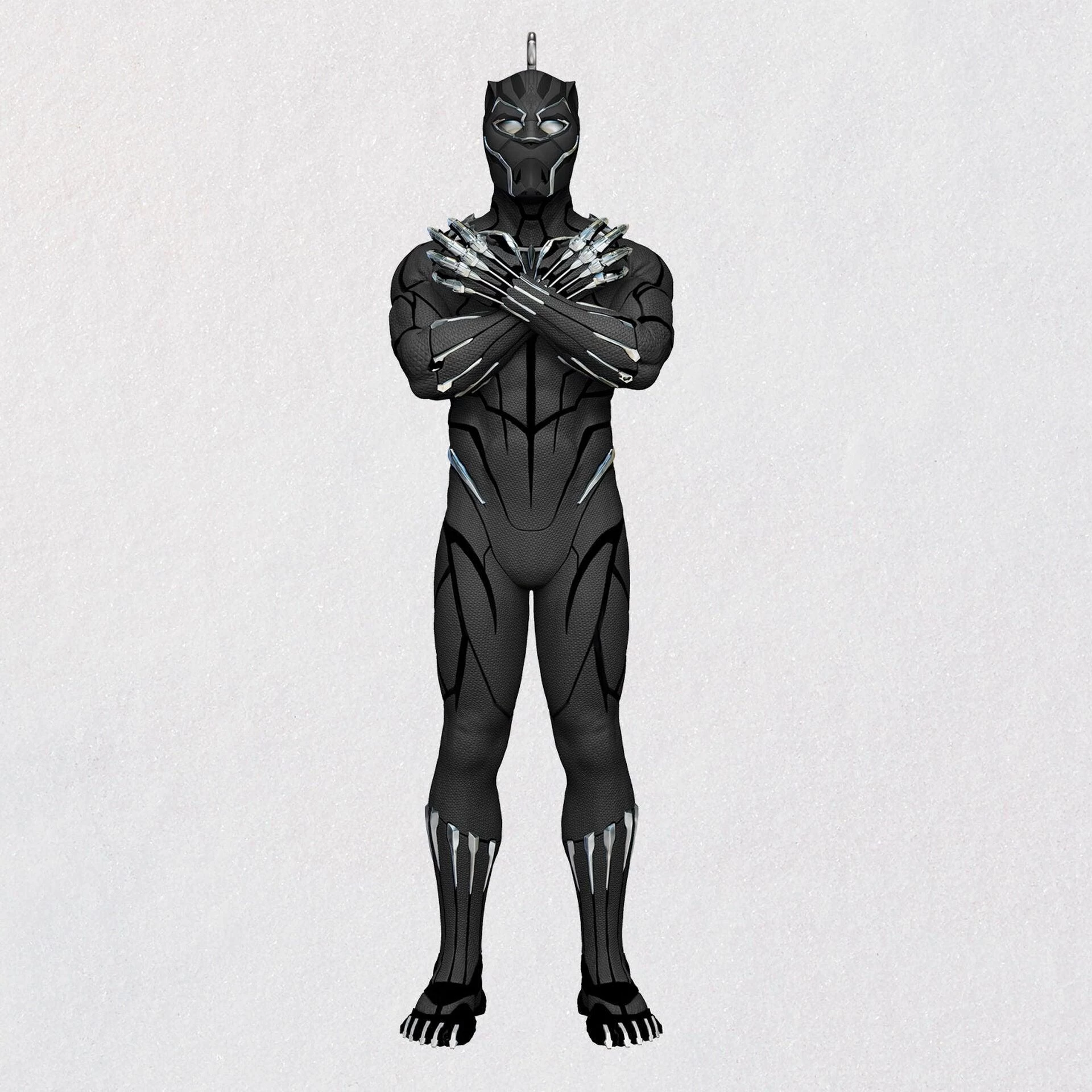 Determined to live up to his father’s legacy, King T’Challa defends the small, yet technologically advanced, African nation of Wakanda—and the world—as Black Panther. This Christmas tree ornament features the powerful warrior wearing his high-tech Vibranium suit, posed in the iconic Wakanda Salute. Wakanda forever!