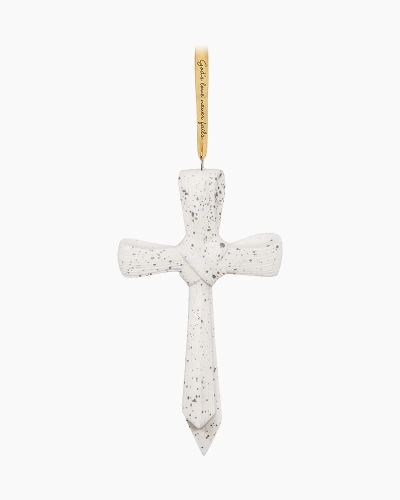 Express your faith at the holidays and every day with this pretty porcelain cross Christmas tree ornament. The inspirational message and palm leaf texturing offer a sacred symbol of faith for your own home or a meaningful gift for friends and family.