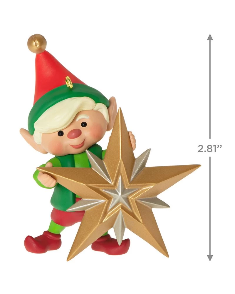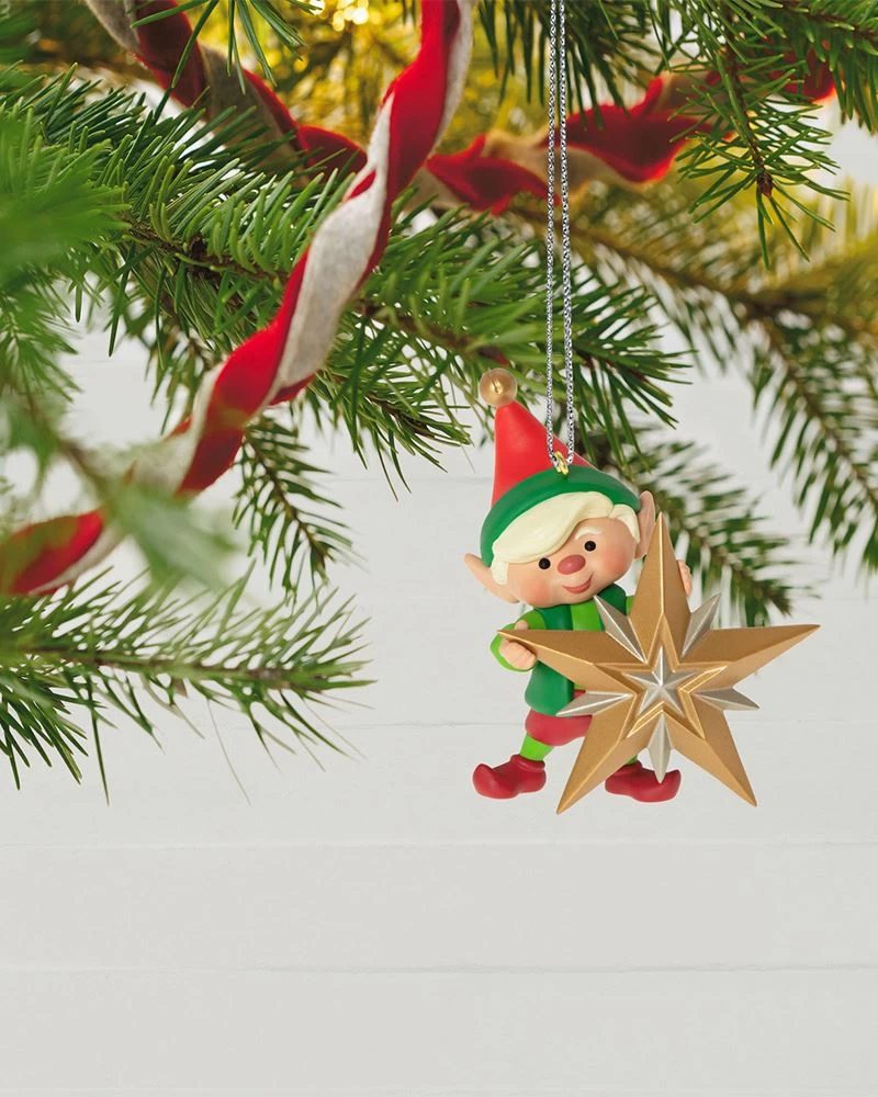 Deck the halls – and your tree – with some help from this cute little elf. The festive Christmas tree ornament features one of Santa’s helpers preparing the star for its prestigious placement at the top of the tree.