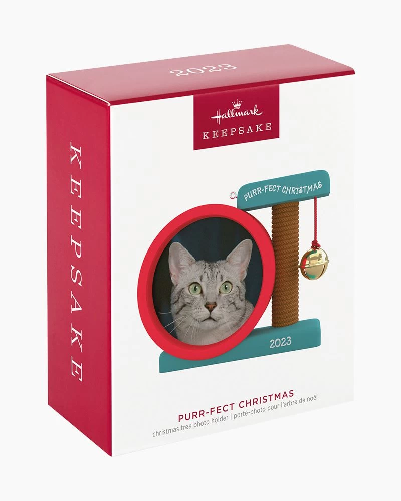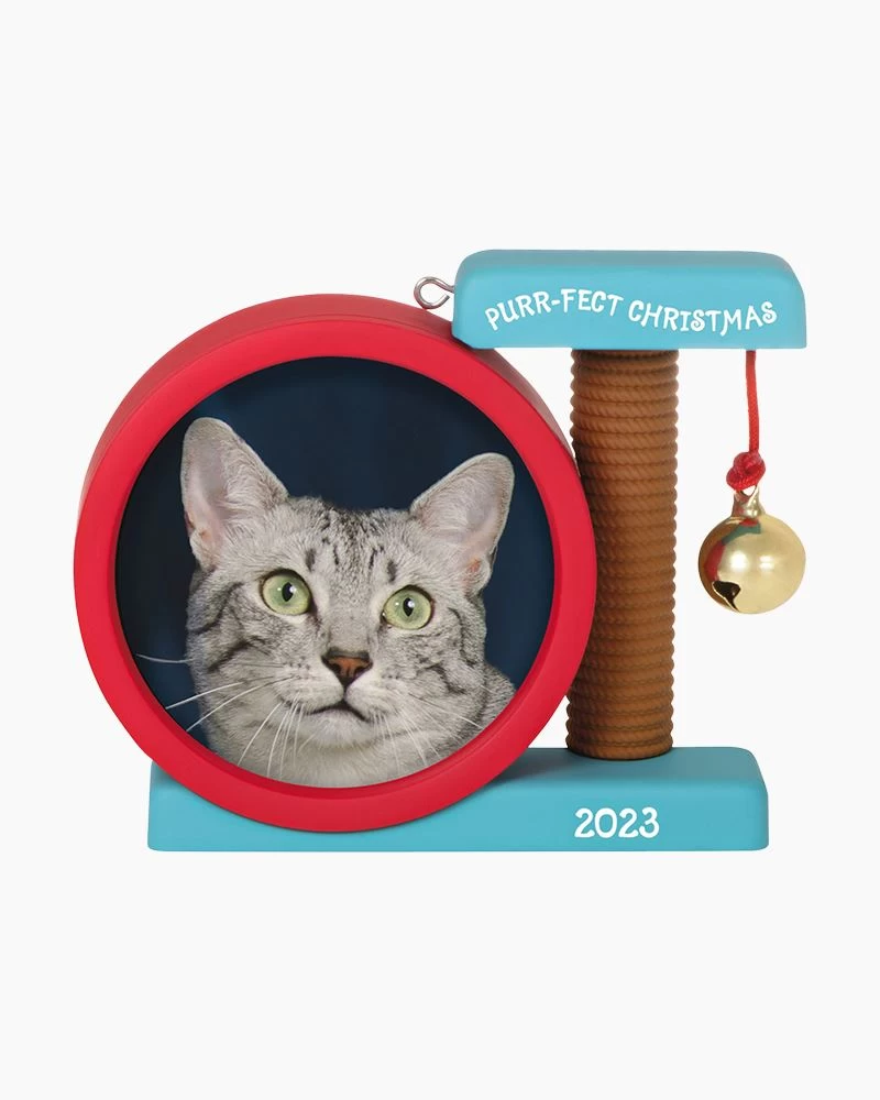 Have a very “meowy Christmas” with this playful photo holder Christmas tree ornament. Frame features a cat scratcher tree design with a jingle bell attachment. Add a small snapshot of your favorite feline to celebrate kitty’s first Christmas or to remember a special cat for years to come. Year-dated 2023.