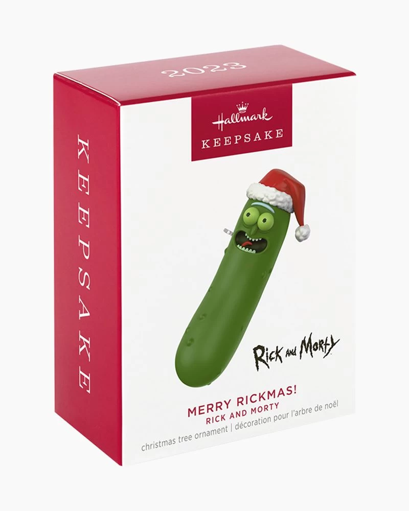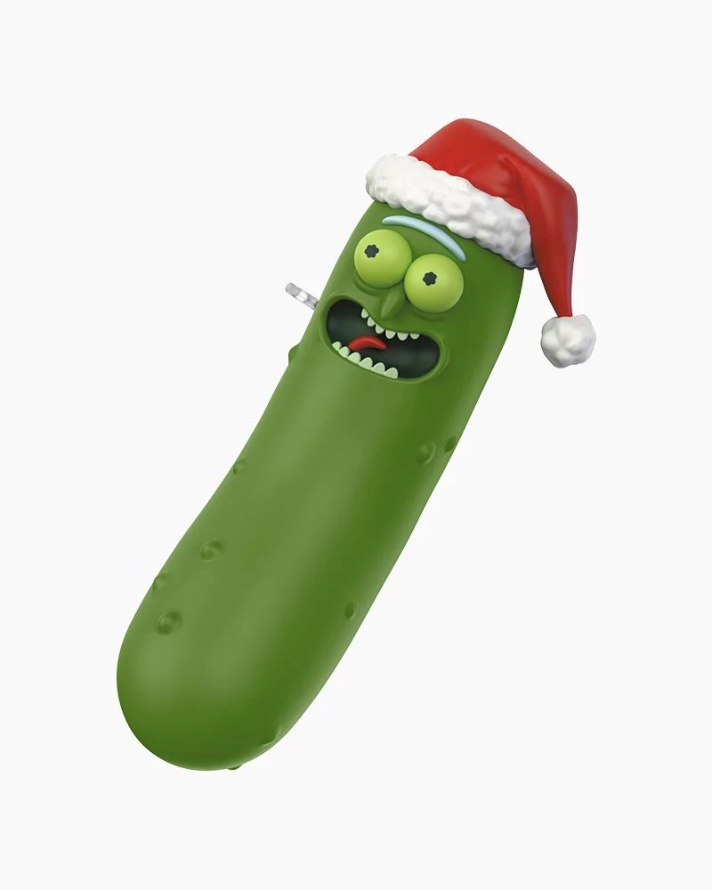 Ho ho ho and wubba lubba dub-dub! Why settle for a merry Christmas when you can have a merry Pickle Rickmas? Styling a fan-favorite incarnation of interdimensional traveler Rick Sanchez with an iconic Santa hat, this Christmas tree ornament is a holiday mash-up that any fan of the adventures of “Rick and Morty” is sure to relish.
