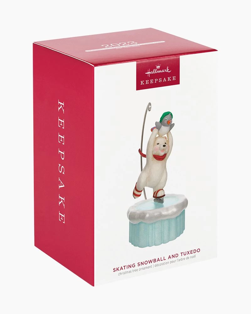 - Key Features: Connect this Magic Motion ornament to Hallmark’s Keepsake Power Cord (sold separately) to see Snowball and Tuxedo skate around the rink