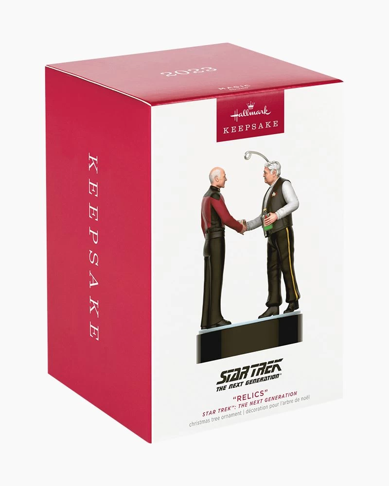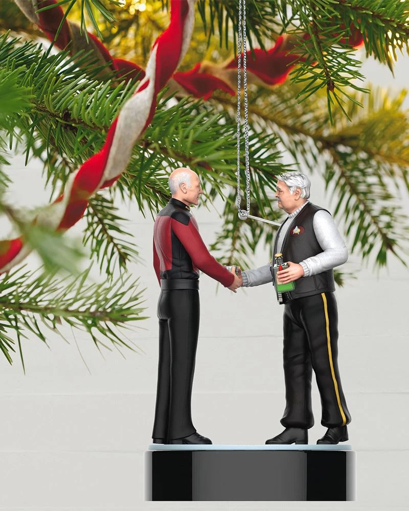 Stardate 46125.3 – Displaced 75 years into the future as the result of a shuttle accident, Captain Montgomery Scott finds himself aboard a “U.S.S. Enterprise” that’s vastly different from the ship he knew as a Starfleet chief engineer. This Christmas tree ornament captures a conversation between Scotty and Captain Jean-Luc Picard as they reminisce about old ships in the “Star Trek: The Next Generation” episode “Relics” (battery-operated).