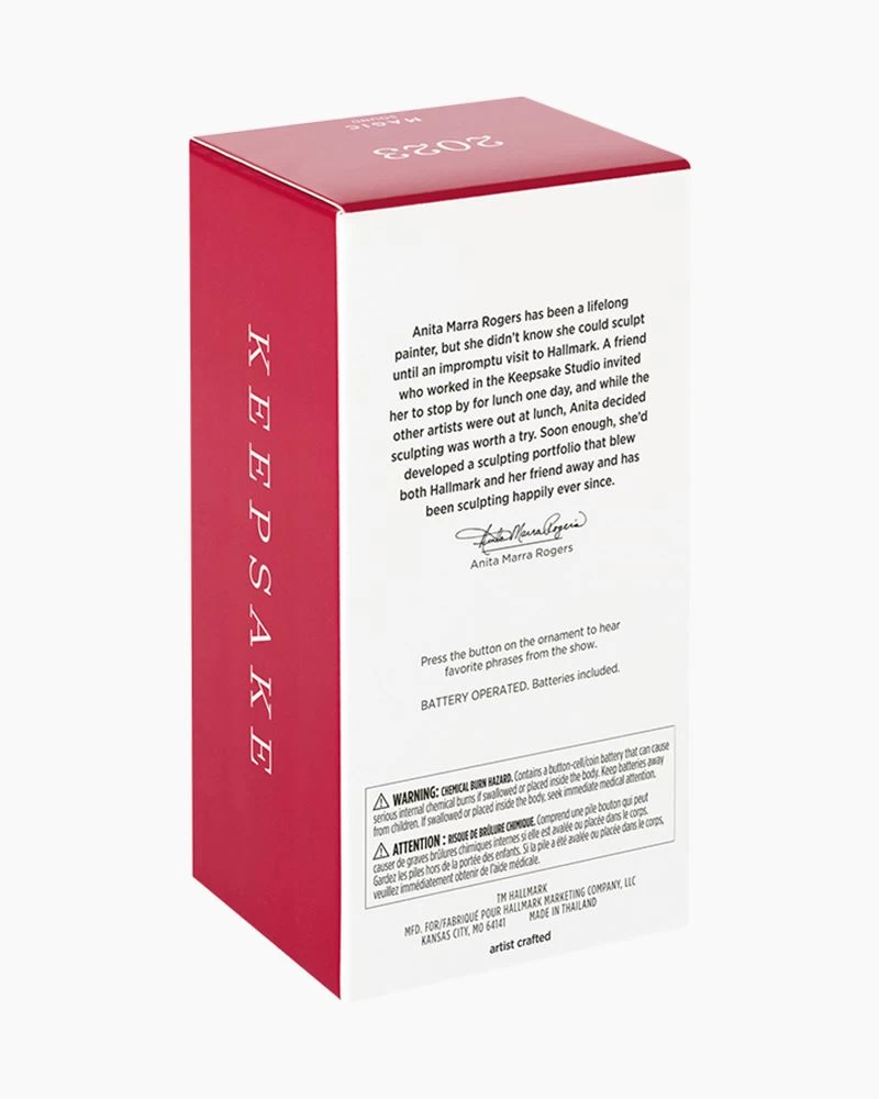 - Key Features: Press the button on the Magic Sound ornament to hear favorite phrases from the show