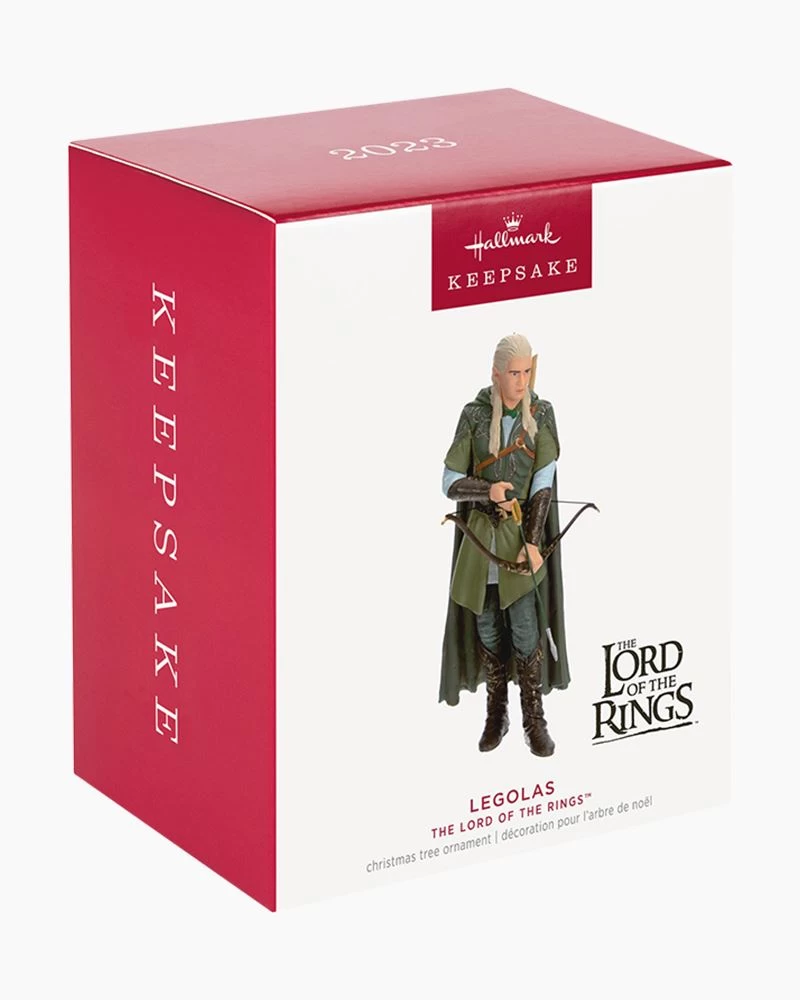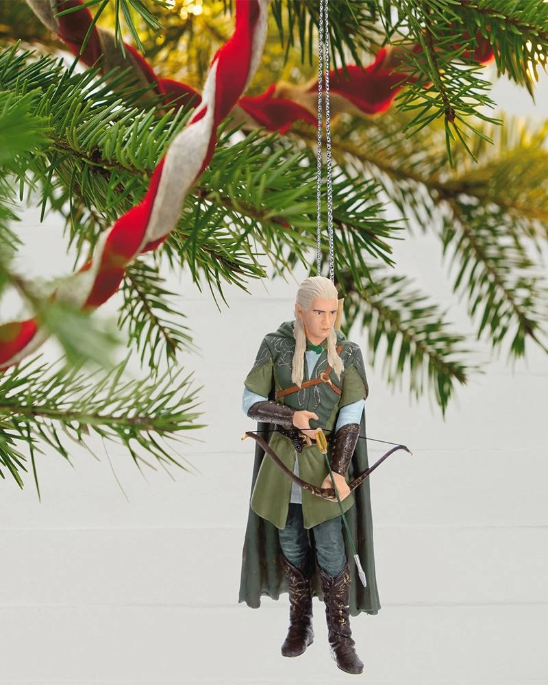 The most renowned archer of his time, Legolas joined the Fellowship and the fight to save Middle Earth, along with Gandalf, Gimli, Aragorn, Boromir, and four hobbits who were most unlikely heroes – Frodo, Sam, Merry and Pippin. This Christmas tree ornament features the loyal and fearless wood elf from “The Lord of the Rings” movie trilogy – bow drawn and poised to let the next arrow fly.