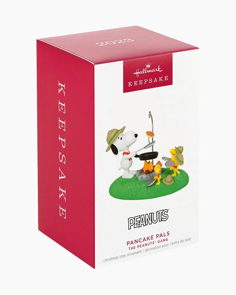Scoutmaster Snoopy and his Beagle Scouts are up and at ’em, ready to fuel up for a fun day of camping with pancakes cooked over the fire. Celebrate the timeless tradition of scouting with this cute Peanuts Christmas tree ornament featuring Snoopy, Woodstock and their yellow feathered friends.
