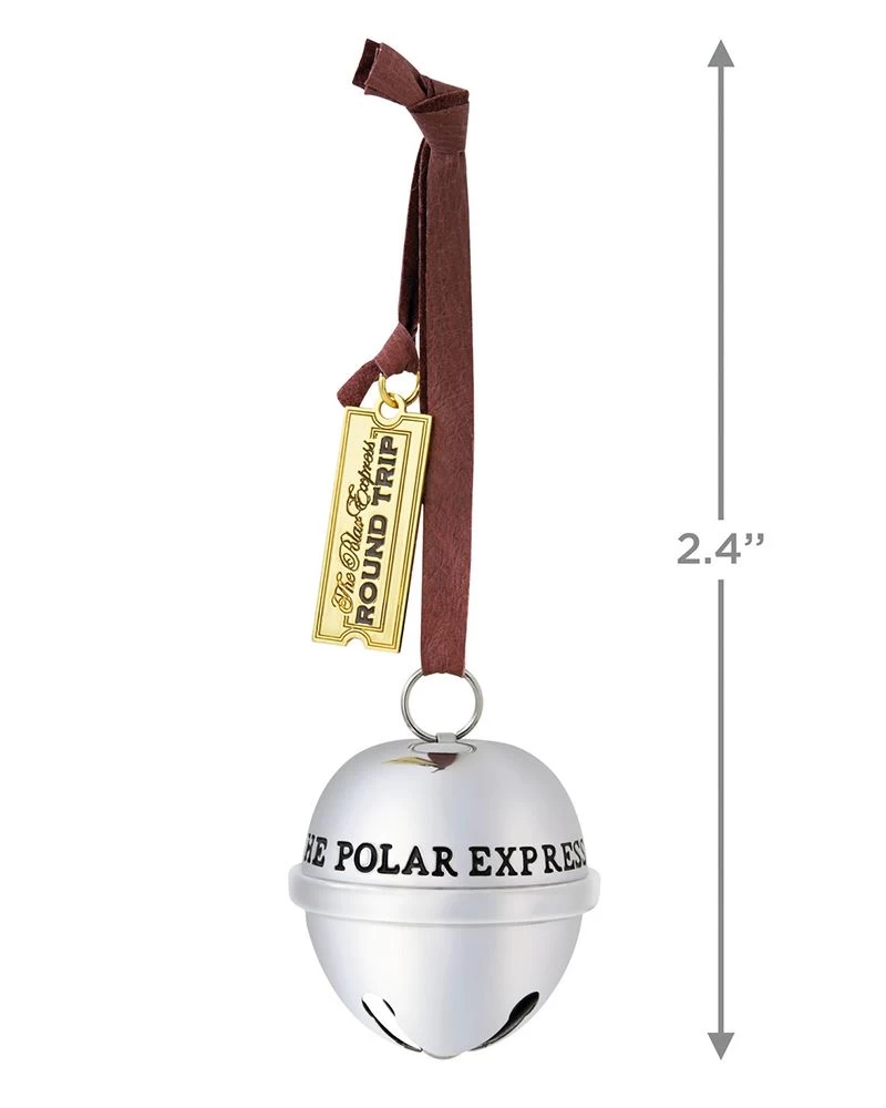 Bring home the First Gift of Christmas with this shiny sleigh bell from the beloved holiday movie “The Polar Express.” Shake the metal Christmas tree ornament and see if the bell still rings for you – we have a feeling it will! The bell is dated to commemorate the year, and a tiny gold train ticket dangles from the faux leather hanger to encourage fans of all ages to believe in the magic of the holidays. Year-dated 2023.