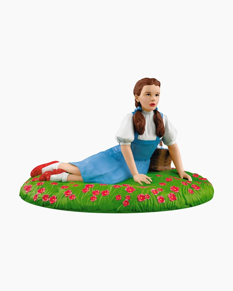 With Emerald City in sight, Dorothy Gale, Scarecrow, Tin-Man and Cowardly Lion needed only to cross a vast field of poppies to find the Wizard. But the Wicked Witch of the West had poisoned the flowers, lulling Dorothy into a deep, dangerous sleep. Relive the classic scene from “The Wizard of Oz” with this colorful Christmas tree ornament.